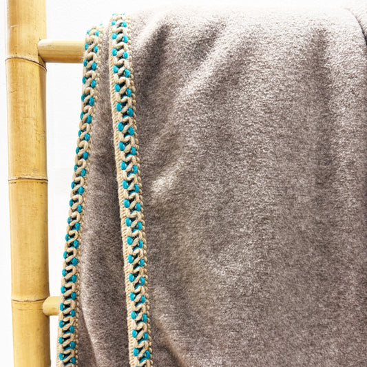 Coperta Soft Bamboo Nimes Tortora – Eleganza Naturale con Dettagli Turchesi